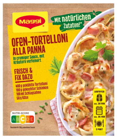 In einem Topf Milch und Wasser erwärmen. MAGGI Fix für Ofen-Tortelloni alla panna einrühren und zum Kochen bringen. Etwas abkühlen lassen, Eier unterrühren. Mit Pfeffer würzen. Die Sauce über dem Gemüse verteilen. Den restlichen Ziegenfrischkäse in kleinen Häufchen auf der Quiche verteilen und im Backofen ca. 35 Min. backen.