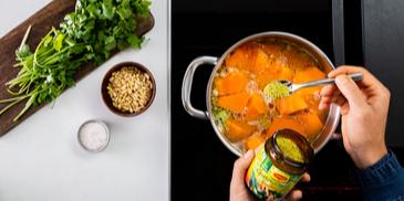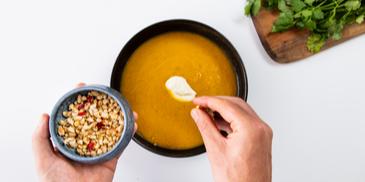 Kürbissuppe mit Zitronengras und Pinienkern-Krokant