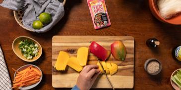 Glasnudelsalat mit Sesam-Hähnchen und Mango