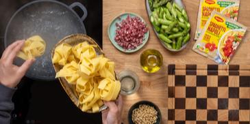 1 Teelöffel Olivenöl Pappardelle (breite Bandnudeln)