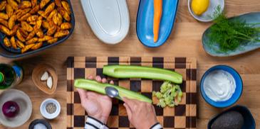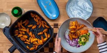 Knuspriger Kartoffelsalat im Airfryer mit Tzatziki