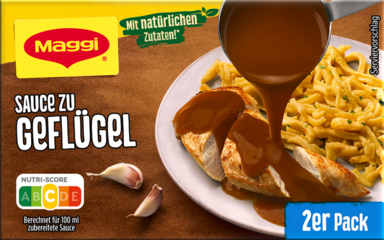 MAGGI Sauce zu Geflügel passt hervorragend zu Geflügelgerichten jeder Art. Ob Hähnchen, Ente oder Pute – mit dem unkomplizierten Saucen-Rezept von MAGGI ist im Handumdrehen die perfekte Sauce für die eigenen Lieblingsgerichte zubereitet. Und das Beste: MAGGI Sauce zu Geflügel eignet sich auch wunderbar, um eigene Saucenideen zu verwirklichen.