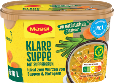 MAGGI Klare Suppe mit Suppengrün in Wasser auflösen und zugießen. Mit Pfeffer und Zucker würzen. Zum Kochen bringen und bei mittlerer Wärmezufuhr ca. 5 Min. kochen. Mit einem Stabmixer fein pürieren. Nochmals abschmecken und nach Belieben durch ein Sieb streichen. Die Suppe in tiefen Tellern verteilen und mit dem Soja-Joghurt-Topping anrichten. Kerne-Mix darüber verteilen und servieren.